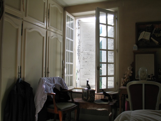 Dans le calme matinal de la fenêtre ouverte, d'entre les volets le soleil vient caresser ses chemises, souvenir d'un temps laborieux ou d'un anniversaire tout aussi passé.